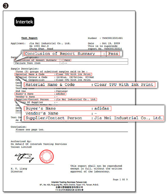(Jia Mei Industrial Co., Ltd. 是ppark的代工廠,而全國公證檢驗(ITS)是唯二被Nike與adidas指定的檢驗公司,另一家是SGS)