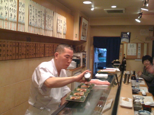 從他的刀法與甩動生魚片的姿勢