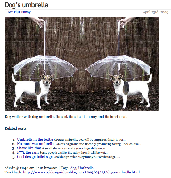 引用自http://www.cooldesignideasblog.net/2009/04/23/dogs-umbrella.html 又少一項商品可以做了!