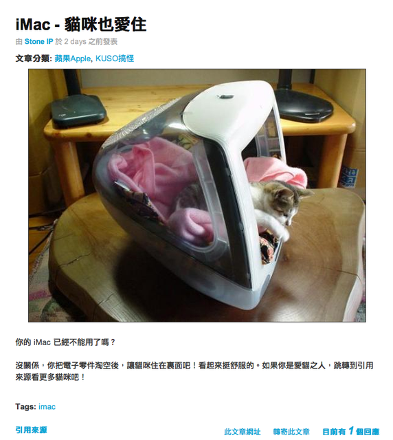 身為apple的愛用者 看到這幅圖片 特別有感覺! 引用自http://chinese.engadget.com/2009/09/06/imac-cat-house/